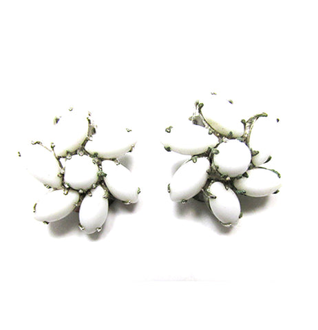 Signed Weiss Vintage 1950s White Cabochon Rhinestone Earrings