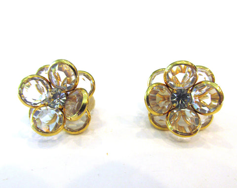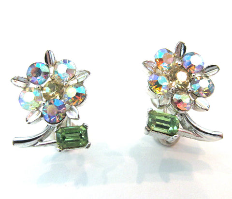 1950s Mid-Century Vintage Aurora Borealis Diamante Floral Earrings