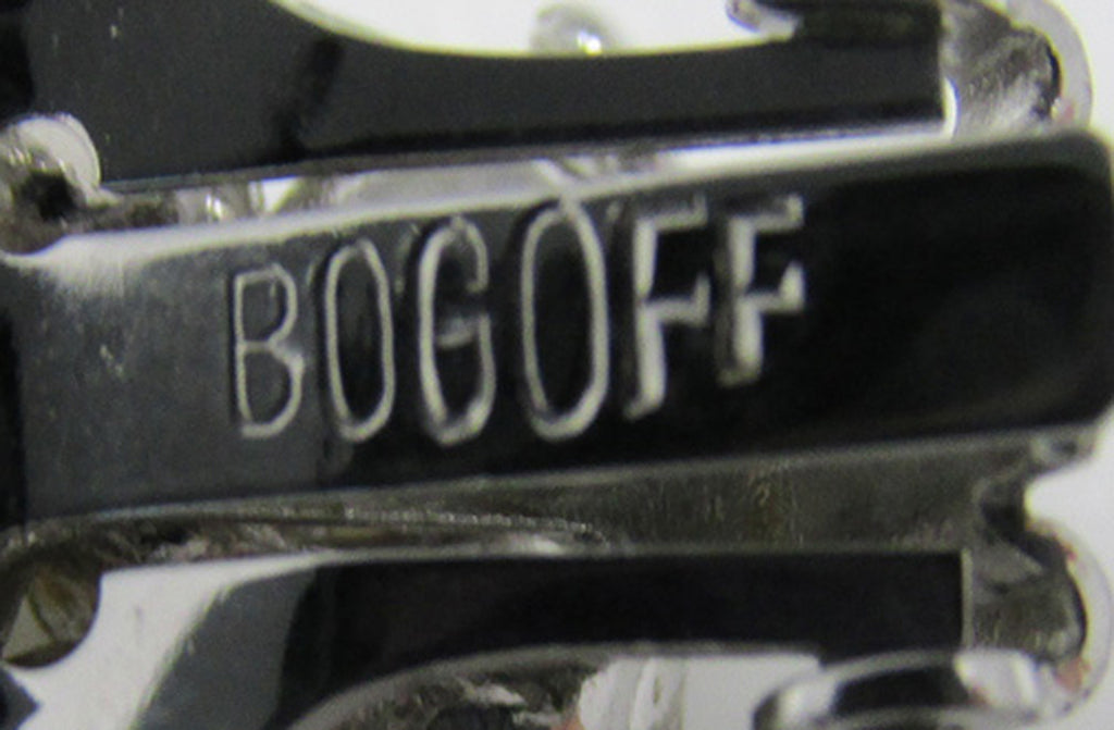 These charming 1950s vintage floral button earrings signed by Bogoff feature delicate ivory-colored faux pearls set in silver-toned rhodium-plated settings. Measuring ¾-inch by ¾-inch, they secure comfortably with clip-on closures. With high-caliber craftsmanship and in superb condition, these earrings show no signs of wear, damage, or peeling pearls. Their elegant, eye-catching design makes them perfect for any occasion, day or evening, and they offer a stunning, timeless look—ideal for a bride's special day or as a treasured addition to any jewelry collection.