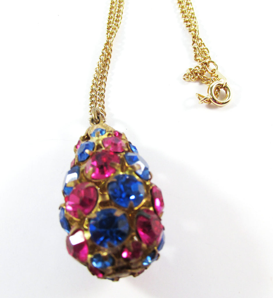 Vintage 1960s Fuchsia and Sapphire-Blue Rhinestone Pendant
