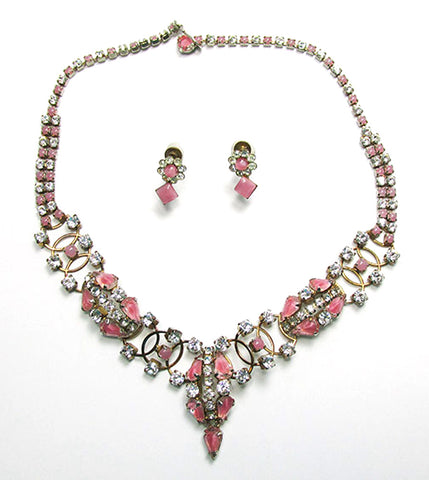 Unique Vintage 1950s Pink Givre Rhinestone Necklace and Earrings