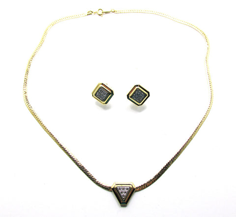 Signed Avon 1960s Vintage Geometric Rhinestone Necklace and Earrings