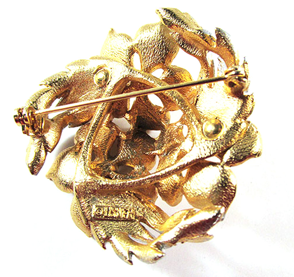 Lisner Vintage 1950s Clear Rhinestone Gold and Silver-Toned Floral Pin