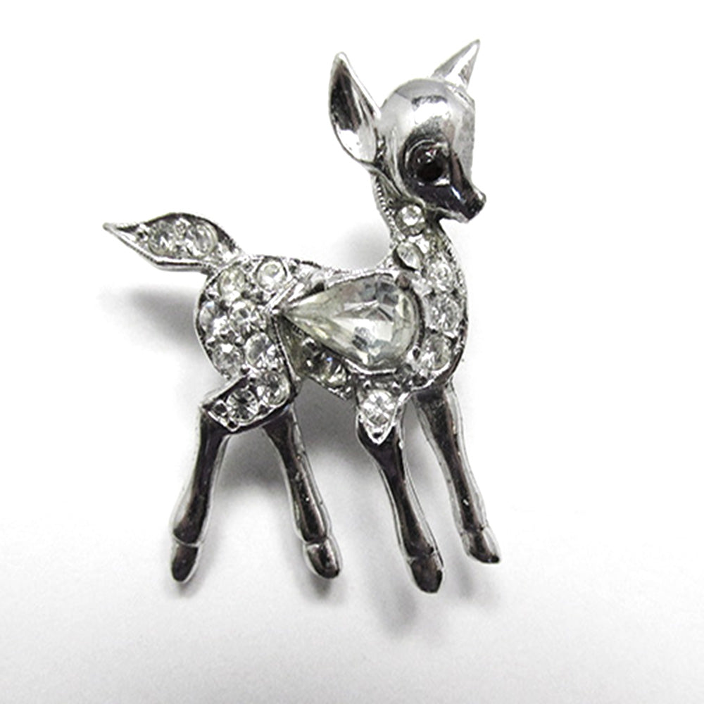 Delightful Vintage 1950s Mid-Century Figural Baby Deer Rhinestone Pin