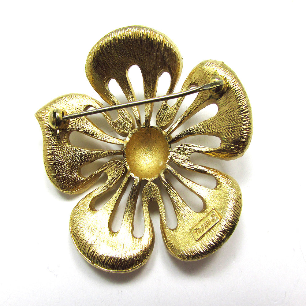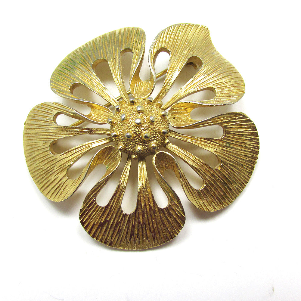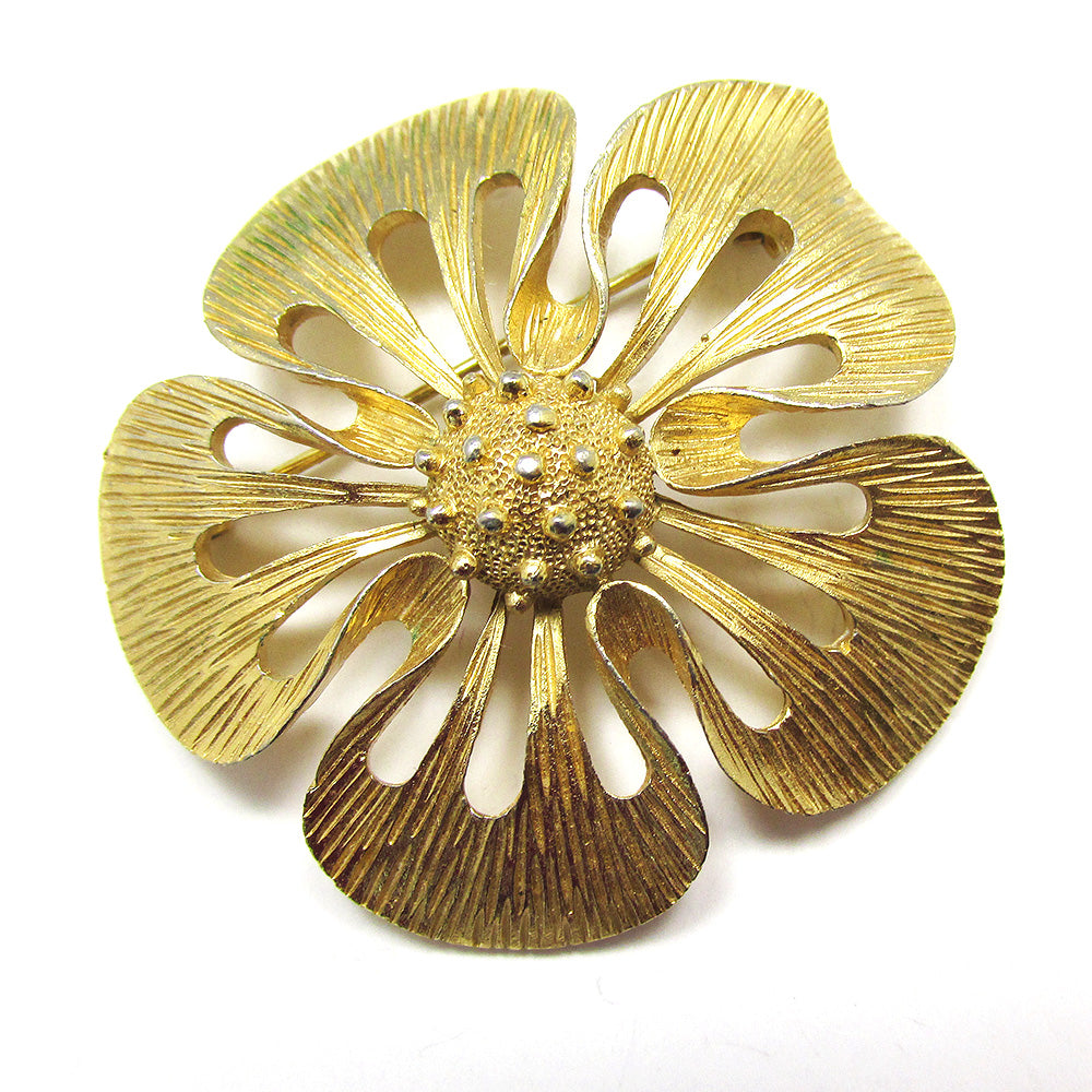 Signed 1950s Crown Trifari Mid-Century Flawless Floral Gold Pin