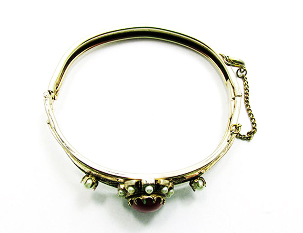 Edwardian-Style Vintage 1940s Carnelian and Pearl Cuff Bracelet