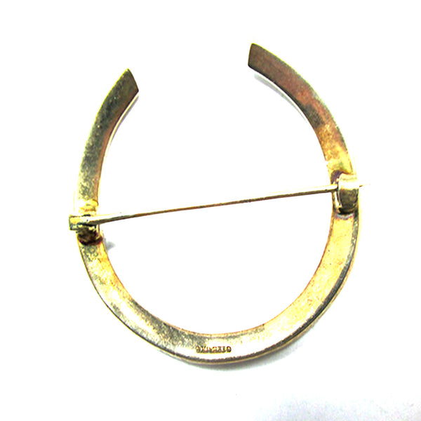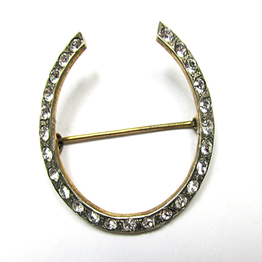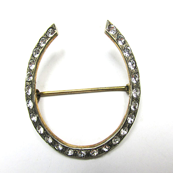 Vintage 1950s Sterling Vermeil and Clear Rhinestone Horse-Shoe Shaped Pin